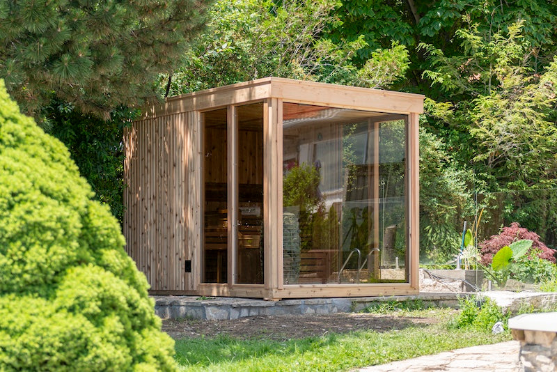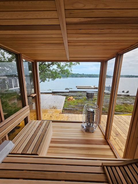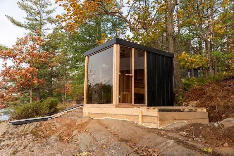 The Orion sauna is a fully insulated outdoor structure with large windows, a glass wall, and two-tier, clear cedar benches. Nothing pairs better with the Orion sauna than spectacular views.